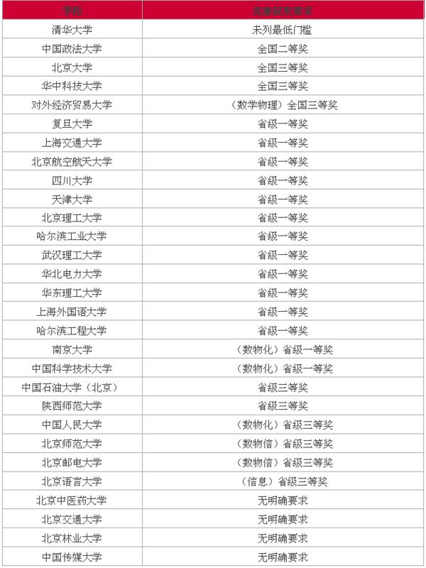 2.全国中学生创新英语作文大赛、全国中学生英语能力竞赛奖各高校的录取要求: