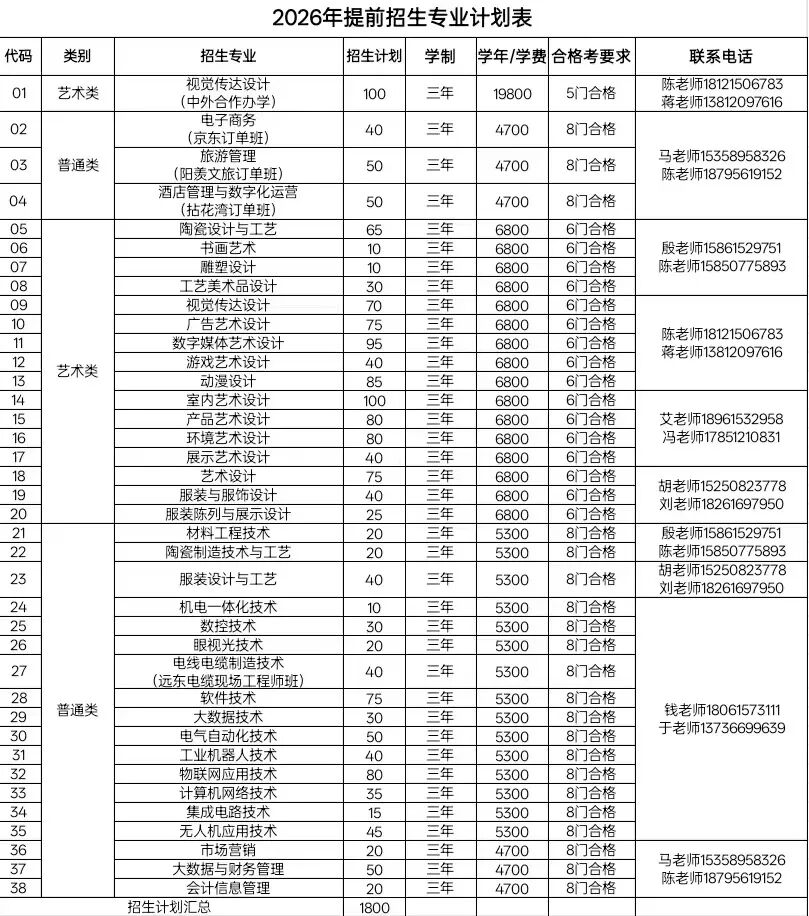无锡工艺职业技术学院2026年提前招生简章