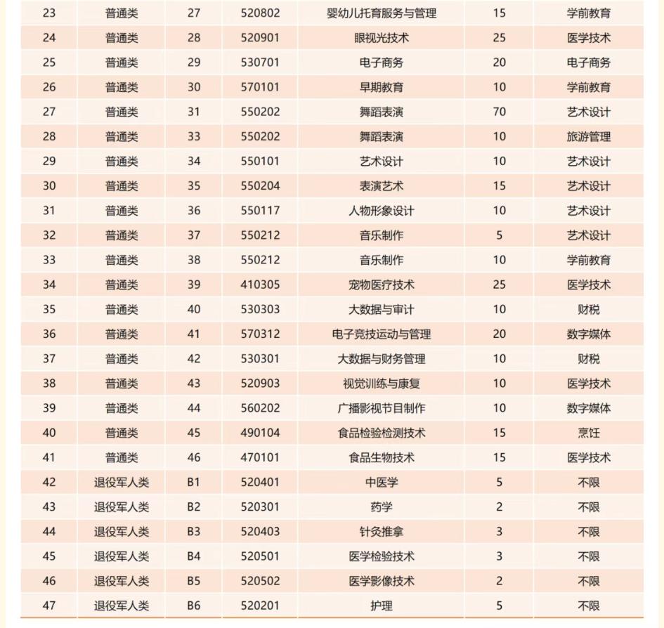 报考专业一览表