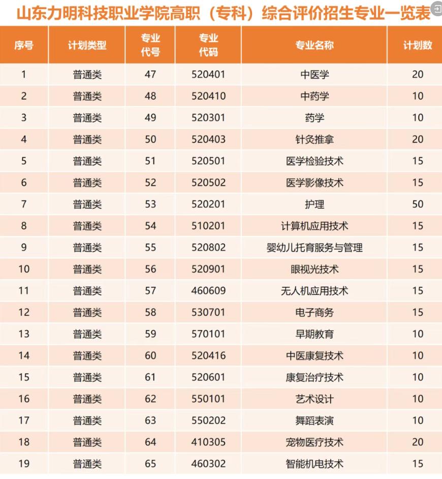 山东力明科技职业学院2026年高职(专科)单招和综评招生简章